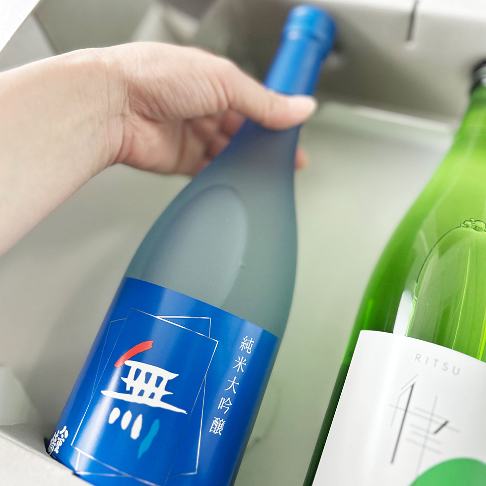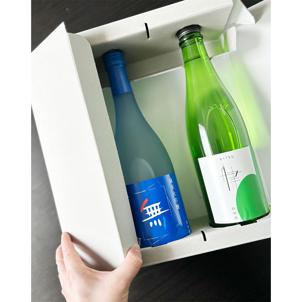 爽やかな香り、軽やかでフルーティーな味わいの「純米大吟醸 青乃無」、すっきりとドライな飲み口で食事にぴったりな「純米 律」の飲み比べセットです。